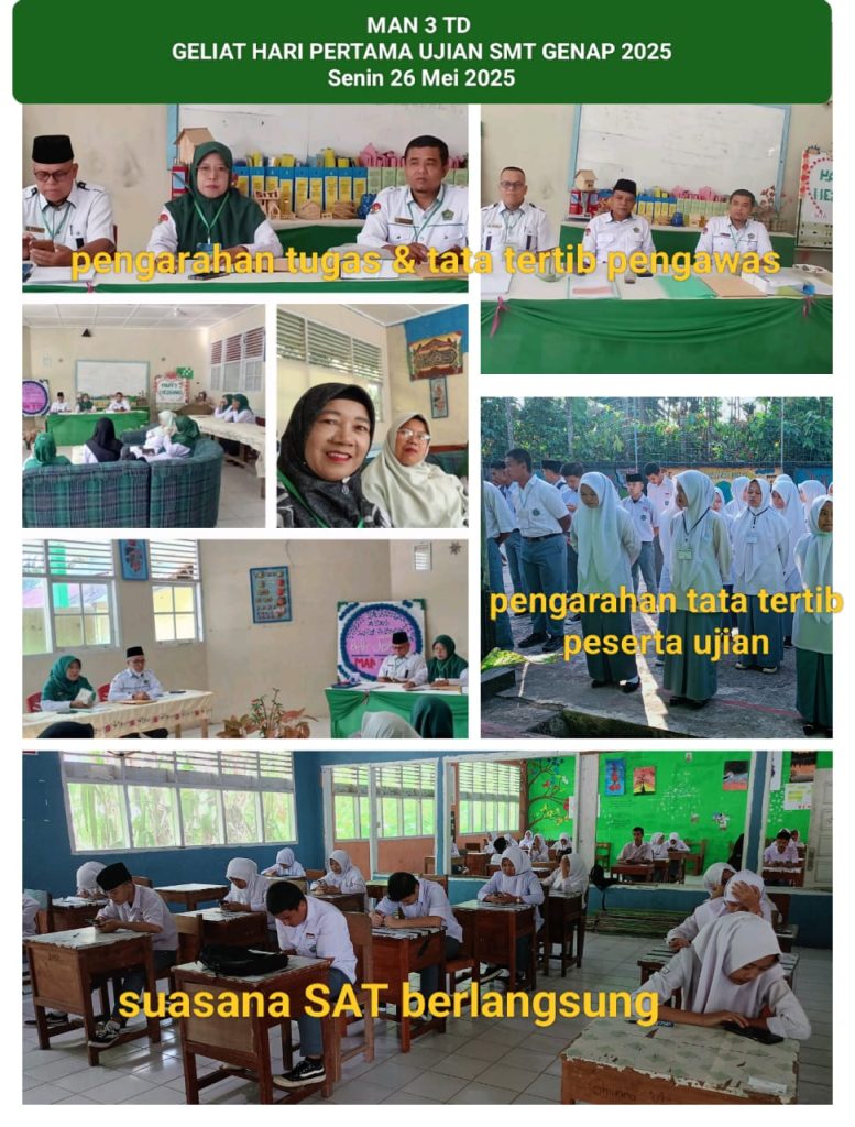 “Tekad yang kuat untuk berlaku jujur” itulah salah satu nasehat yang disampaikan oleh ketua panitia SAT yang diwakili oleh Nurkamal, S.Ag ketika hari pertama ujian semester genap TP. 2024-2025 sebelum memasuki ruangan ujian. Jika tekad kejujuran itu sudah ada pada diri peserta ujian, otomatis siswa akan mempersiapkan diri semaksimal mungkin untuk menjawab soal dengan baik dan mendapatkan hasil… [[ BACA SELENGKAPNYA...]]