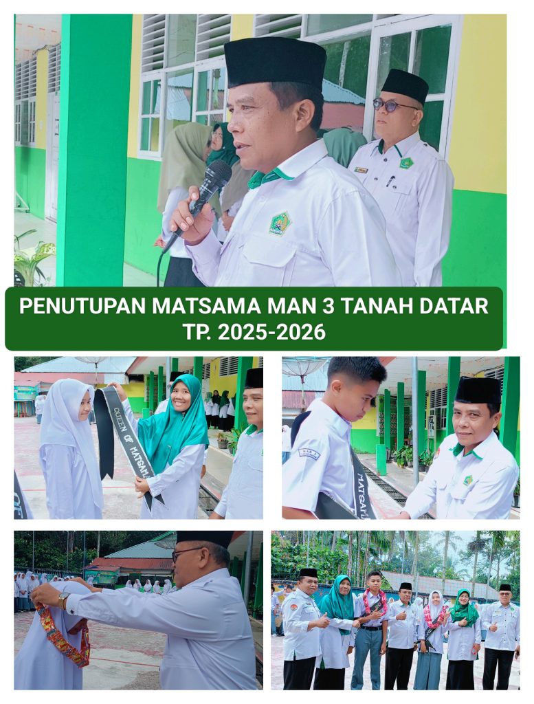 Berakhir sudah masa matsama di MAN 3 TD dari tanggal 14,15 dan 16 Juli yang lalu. Berbagai materi yang telah diberikano oleh nara sumber yang telah ditentukan, seperti profil MAN 3 TD, wawasan Wiyata mandala, akhlakul Karimah, PBB, tata tertib dan out bond. Khusus untuk PBB nara sumbernya sengaja didatangkan dari Polsek Lintau Buo Utara. Terakhir kegiatan matsama ditutup ole kepala madrasah Yarman, MA sekaligus pemasangan tanda penghargaan bagi peserta matsama yang berprestasi selama kegiatan berlangsung. Demikian humas melaporkan (EY)