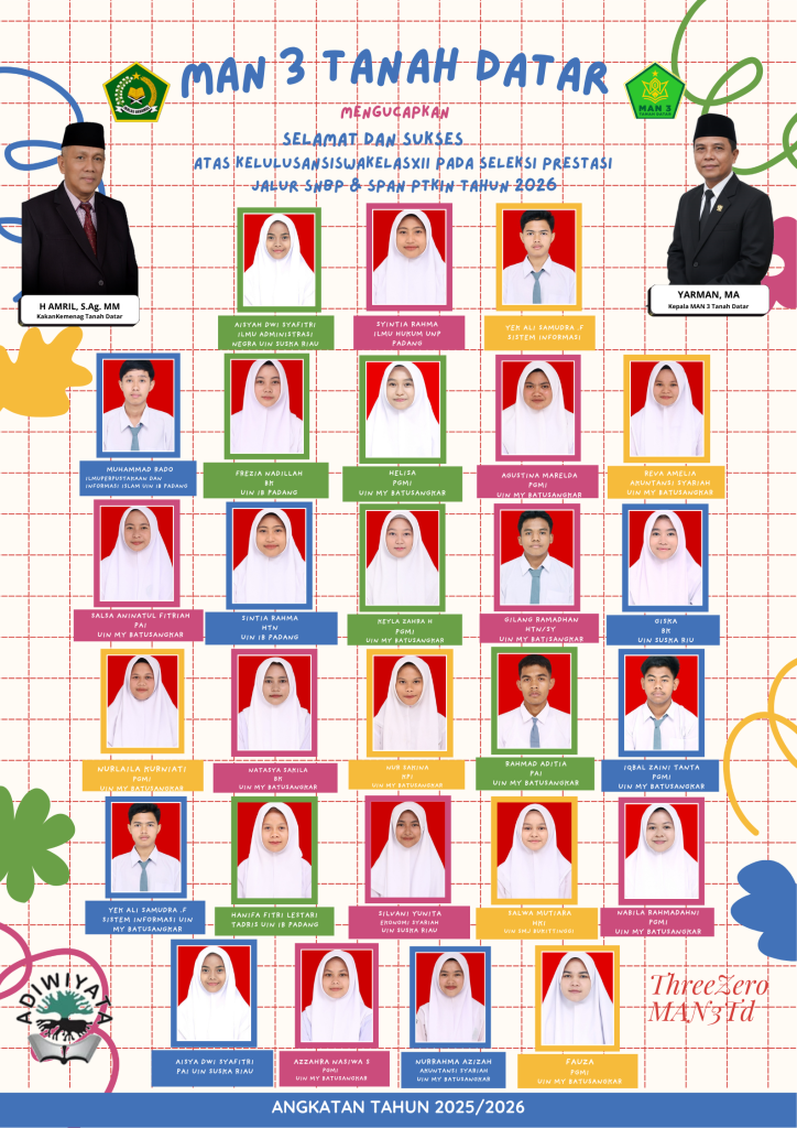 SISWA MAN 3 TANAH DATAR LULUS DI PERGURUAN TINGGI JALUR PRESTASI T.P 2025/2026 JALUR SNBP DAN SPAN PTKIN